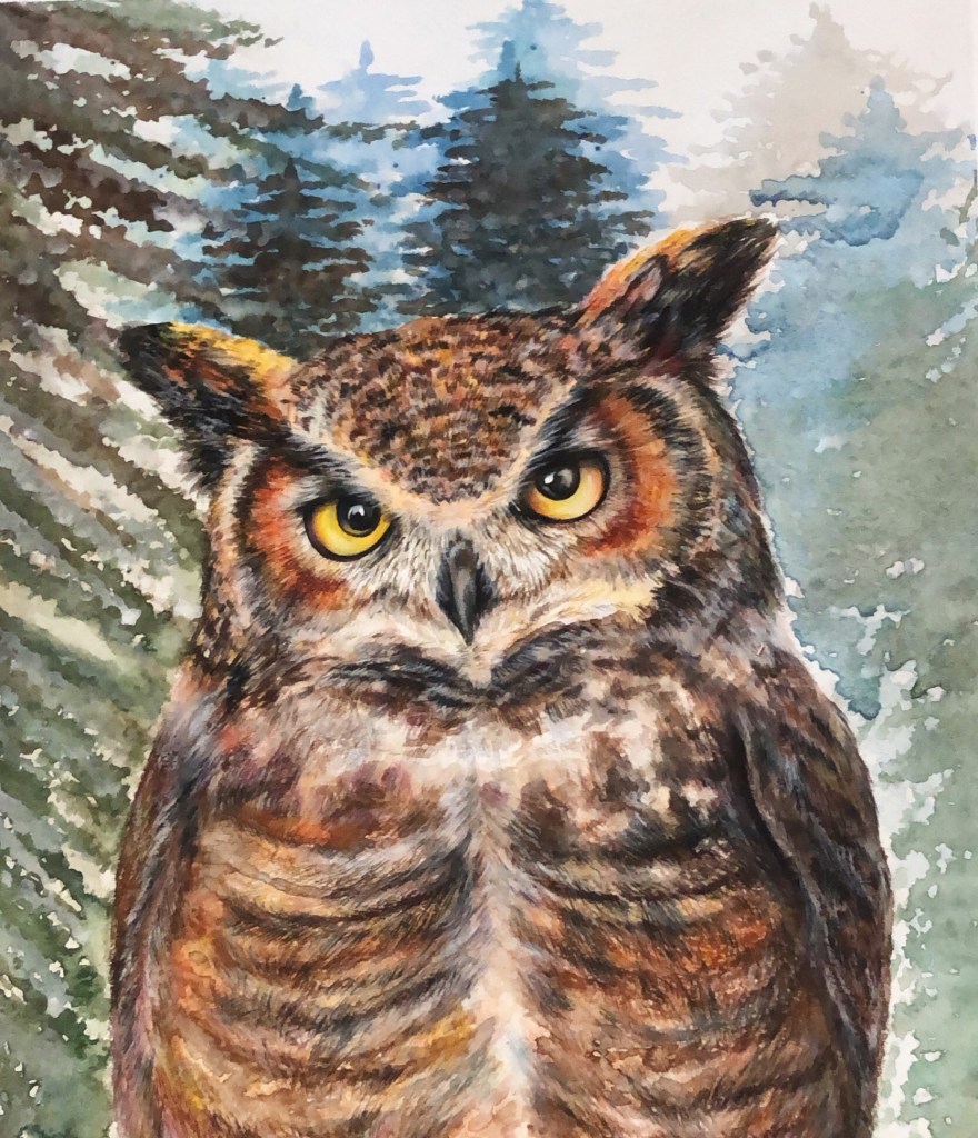 Great Horned Owl Posted on August 14, 2021 by Reese Great Horned Owl Watercolor base, colored pencil. 2019 Author: Reese Children's Book Illustrator, Wildlife artist, & Art Educator living in Mint Hill, NC. Recently graduated from the University of North Carolina at Charlotte with a BFA in Studio Art, concentration in Illustration. View All Posts